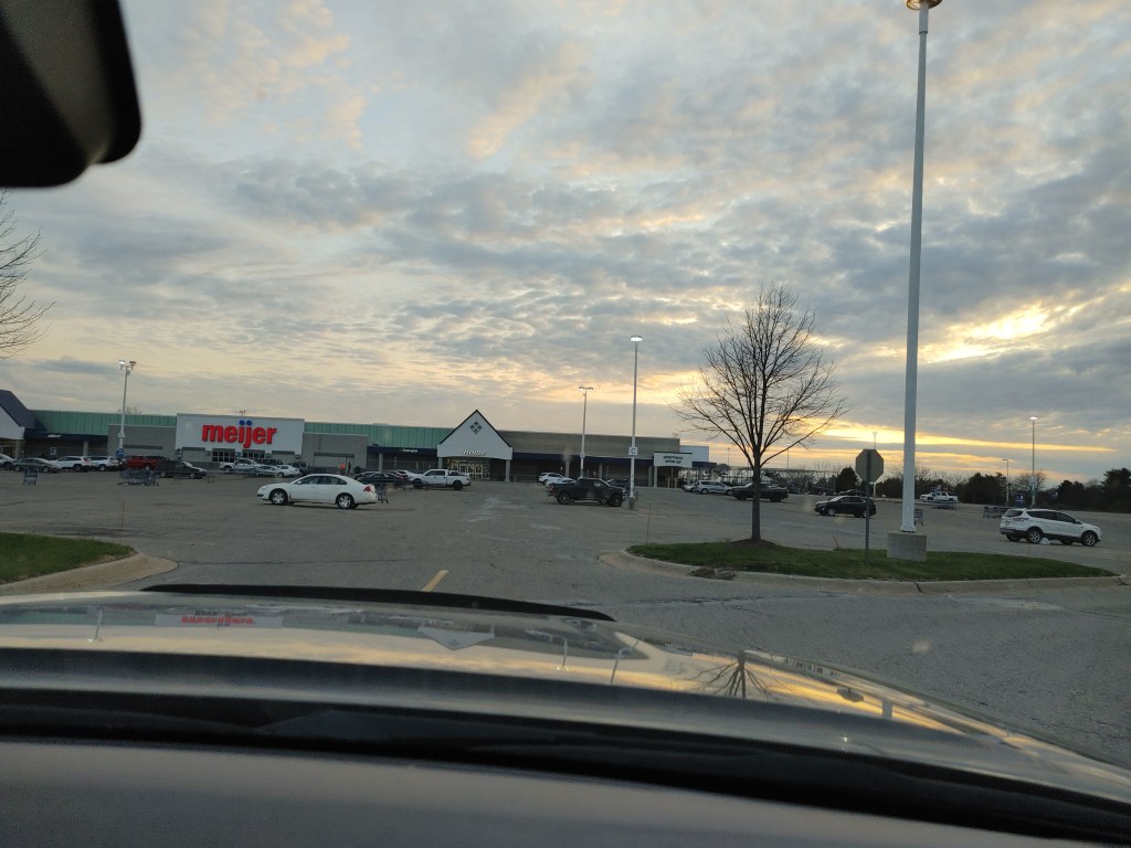 Ok, why do I think this? This afternoon I was out doing Realtor stuff. The hubster and I had a meeting scheduled. We met at Meijer and left my car. I hopped in with him and away we went.