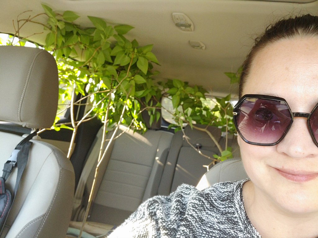 But, how could I resist?? Today I picked up 6 lilac bushes for $15/each! They were advertised as 3 to 4 feet tall. And they were more like 4 to 6 feet tall! They had to duck to get in to the car!