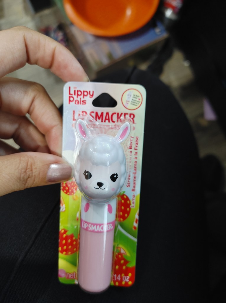 My Mommy was walking in the store, saw this, and thought of me ❤ It is a tasty strawberry flavor. But, I would not advise putting this on and then kissing a fluffy puppy . . like I may have done and then had to pull hair off my face for a minute.