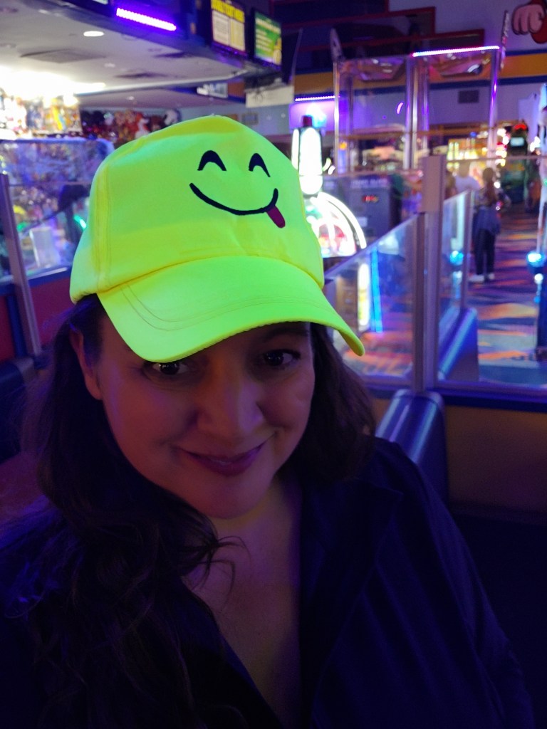 The kiddos combined prize tickets and picked prizes. They ended up with extra tickets left over after picking their prizes. And I got this fun emoji hat!!