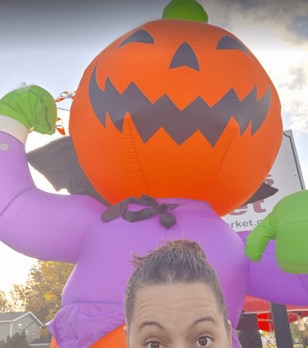 This morning’s Holt Farmer’s Market had this pumpkin head feller out front! And yes, I mean the inflatable! Not me! 😉
