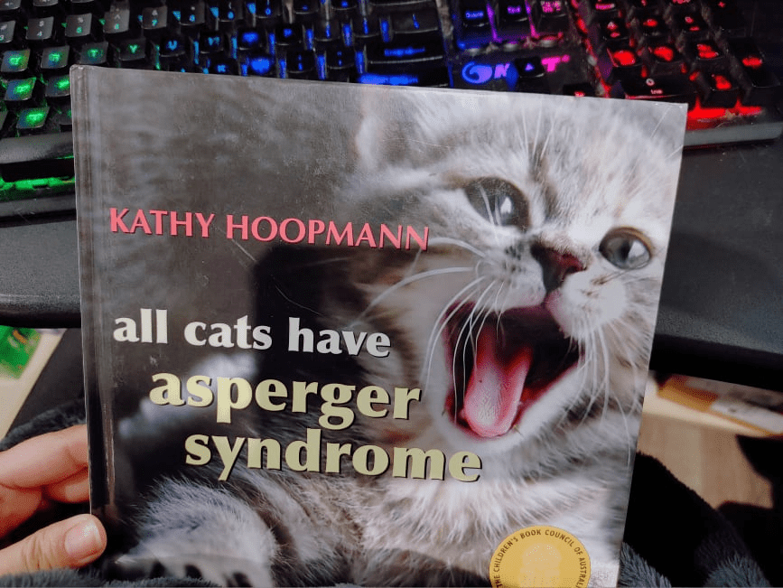 The groups of people who have loved-ones with asperger’s, (the loved ones have the nickname as “aspie”s), has been eye opening, inspiring, helpful, and reflective. About a week ago, someone shared this book all cats have asperger syndrome by Kathy Hoopmann and a book called Break Through the Noise by Mia Reyes. Today my copy of the cat one came in the mail! I read thru it with my aspie and it was good. Lightbulbs went off for my aspie while turning the pages. The same author has a book called all dogs have ADHD. After reading today’s book, I have ordered the dog one also!