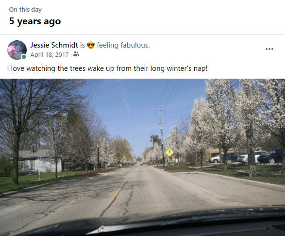 5 years ago today, I was appreciating the spring flowers on trees with leaves just starting to grow. Today, it snowed. Ahhhh, oh well.