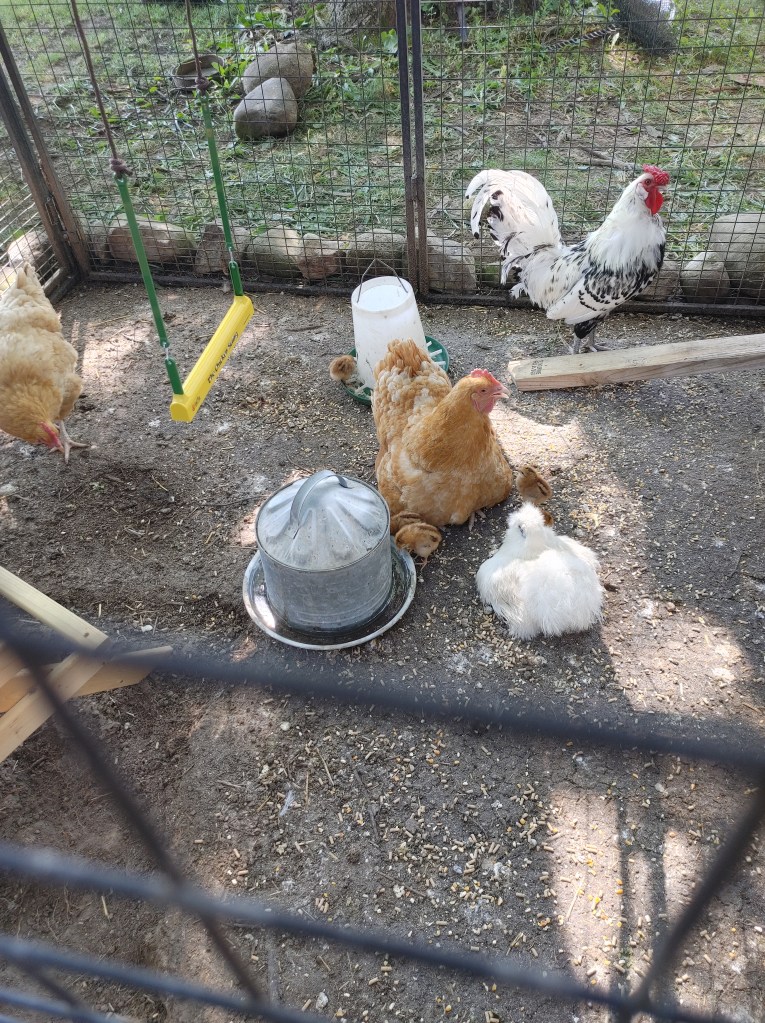 I meant to help the baby back in to the chicken house before bed last night. I forgot. This morning, the baby was gone. There were feathers that something tore off the momma hen while trying to get to the baby. I don’t know who was more upset, me or the hen 😦