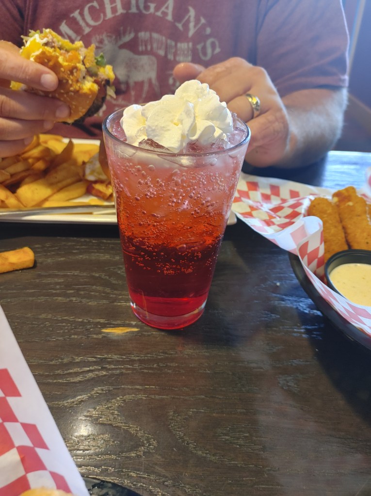 For those that don’t know, the hubster is a root beer and cream soda connoisseur! So when he saw Raspberry Cream Soda on the menu, he had to try it! He said it was different, but good!