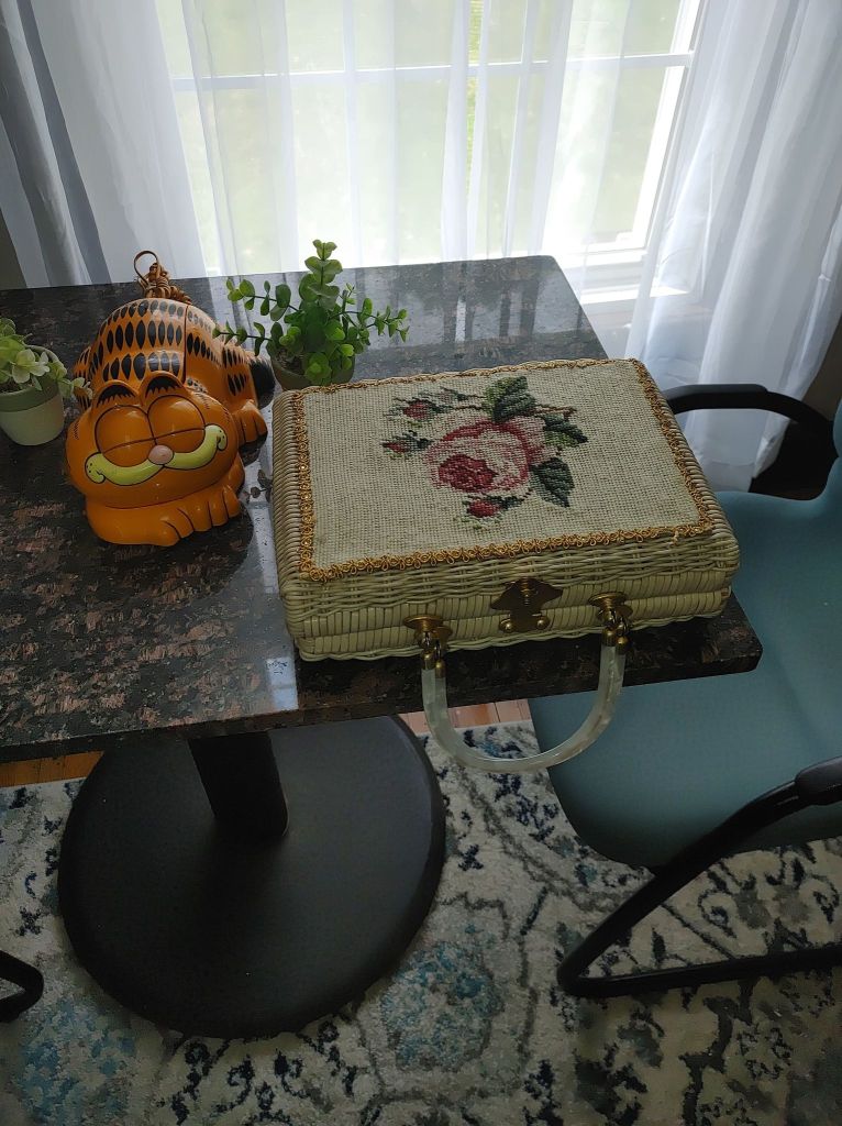 See the purse in the picture? My kiddo bought it at a garage sale. So it came home with us.