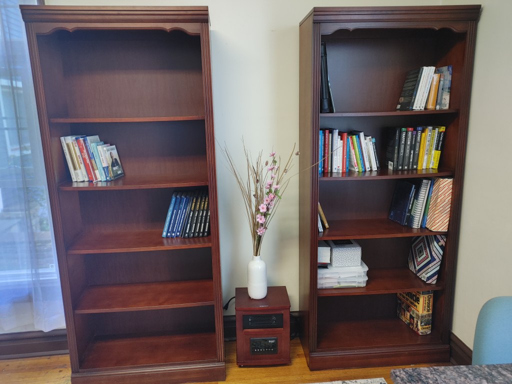 Last night, a kiddo and I went and got the shelves. These are nice shelves! We cleaned them up and left them last night. This morning I unloaded the first two boxes of books! I have more books here at the house. I can’t wait to bring them in!! I love all the books! And now the pretty bookshelves to put them on!!