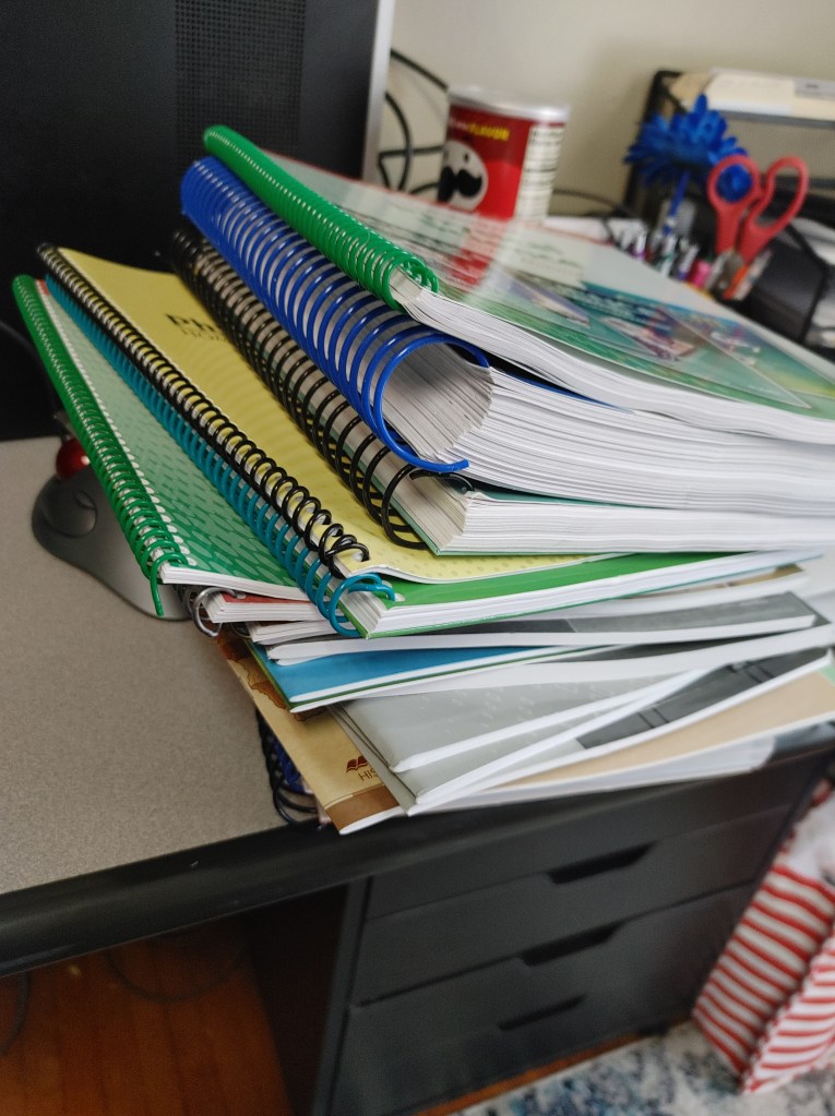 Today was Day One of Homeschooling my Freshman! His first day was going to coincide with his siblings . . but, I needed more time. I isolated myself in the office on Saturday for a bit and got all prepared!