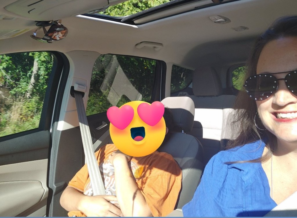 * I’ve covered kiddo with an emoji because I only share kiddo faces where I can have some kind of control of the audience 🙂 He had his eyes closed resting anyway.