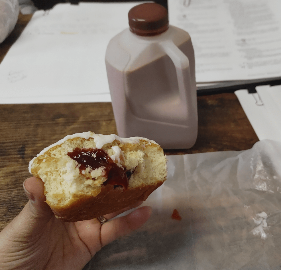 The hubster was coming in to town. I sent a text requesting a donut and chocolate milk. I knew this was a LOT of sugar for morning time. But, it just sounded good.