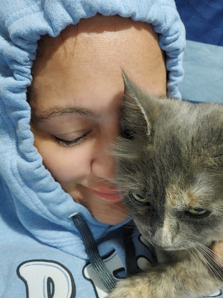 Tonight I am thankful that we went out and were amongst people! Tonight I am also thankful for being back home in comfy clothes snuggling with my kitty cat in my own room!