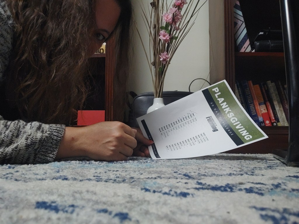 But today, I was back at it with my scheduled 45 second plank for Planksgiving!