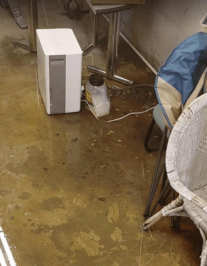 Finally walked in to the basement and saw this. This is the “nice” picture of what I first saw. It doesn’t look so pleasant anymore. I have some clean up to do.