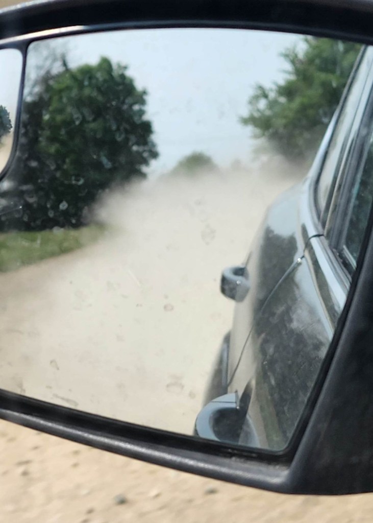 Then our travels took us down a dirt road. We weren’t going fast. But the dust we were kicking up sure gave a Dukes of Hazard feel!