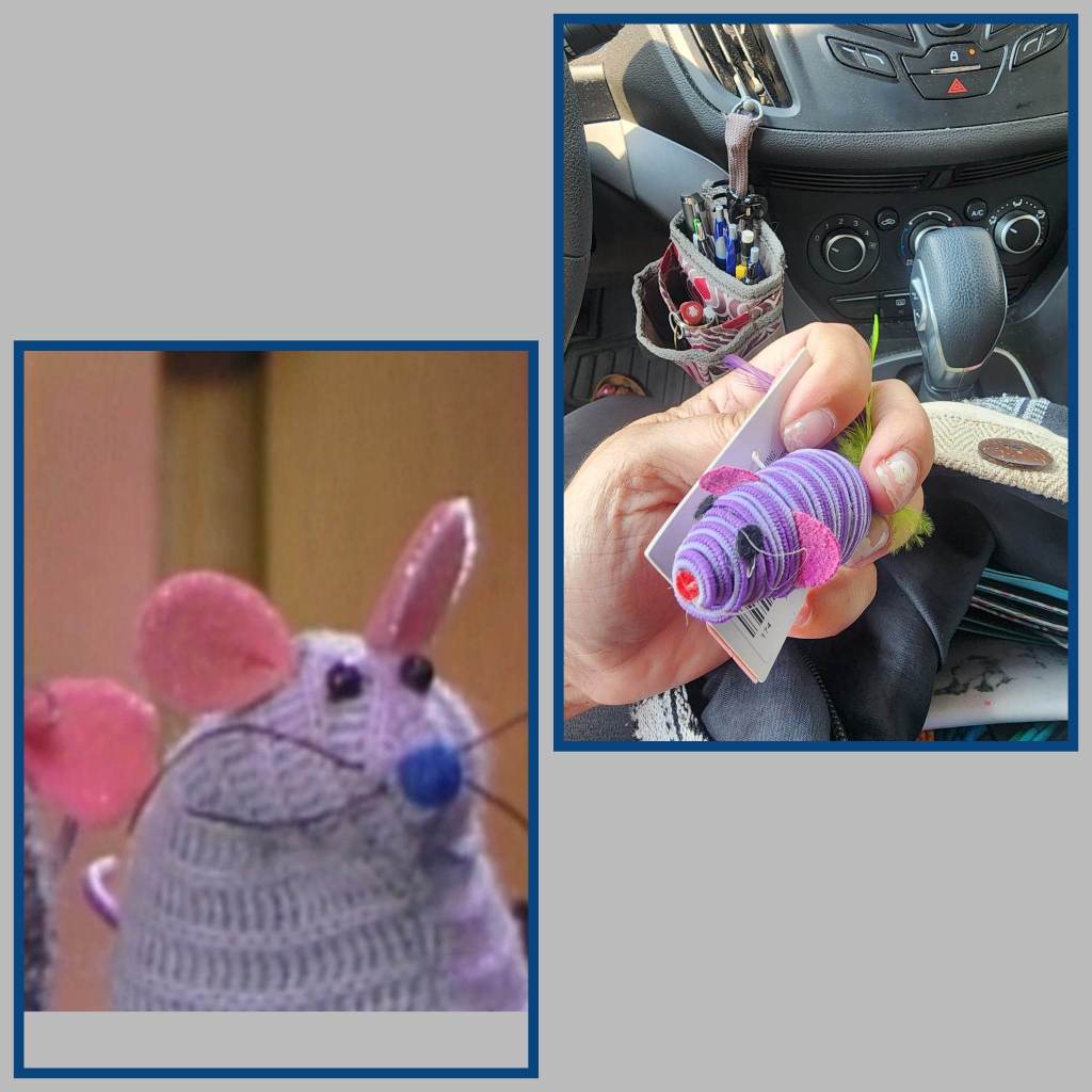 Anyway, I stopped at Meijer today to grab some ibuprofen and mouse traps. Great combination, eh? 🤣 Anyway, I was walking by a clearance rack and found this cat toy on clearance for 75 cents! It reminded of Mew 2! I know they look a little different. But, do you see the similarities?