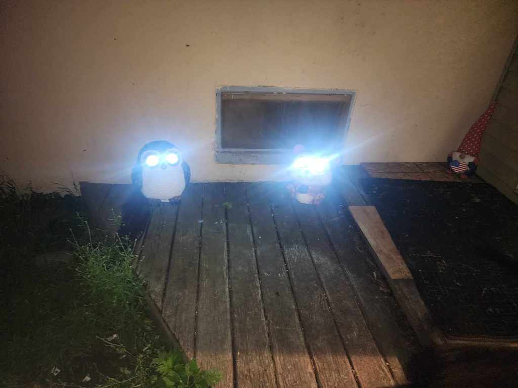 Do you like my new friends?! They were on clearance at Menards! I loved them when I first saw them! There is a squirrel with acorns and an owl. They both smile and have big solar powered eyes 🙂