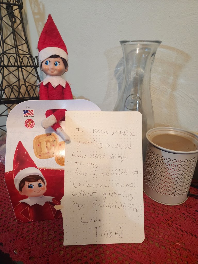 At the beginning of December I wasn’t doing super great. I asked the kiddos if they cared if Tinsel came out, because it would have been a lot for me. They were “meh” about it. I asked if Tinsel should go to a new home with smaller kiddos and there was a resounding NO! 😊