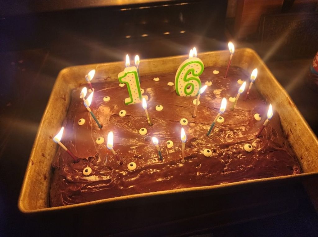 Then candles. Yes, we needed candles. Ones that say “16” are great. Hmm, then some sparkler candles, yep. Then, I spotted candy eyes. Hey, why not, yes, candy eyes too! 😆