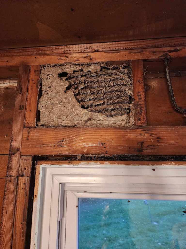 When you open up a wall of a house and see a previously occupied home of some vicious buzzy beings, you breathe deeply when you realize that no one is home! This particular buzzy palace did have one straggler fly out! Thankfully, it was a ladybug! She was squatting! Or maybe she subletted. We didn’t ask for any paperwork, so it’s really anybody’s guess at this point.