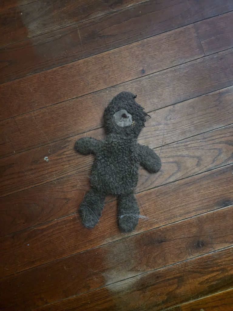 Before my kiddo went to boot camp, he gave our doggo a teddy bear. Henry, the doggo loved the teddy. Teddy was kept very safe during all this time.