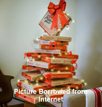 We will have good – Pizza Hut. And we will have presents – from Dollar Tree.