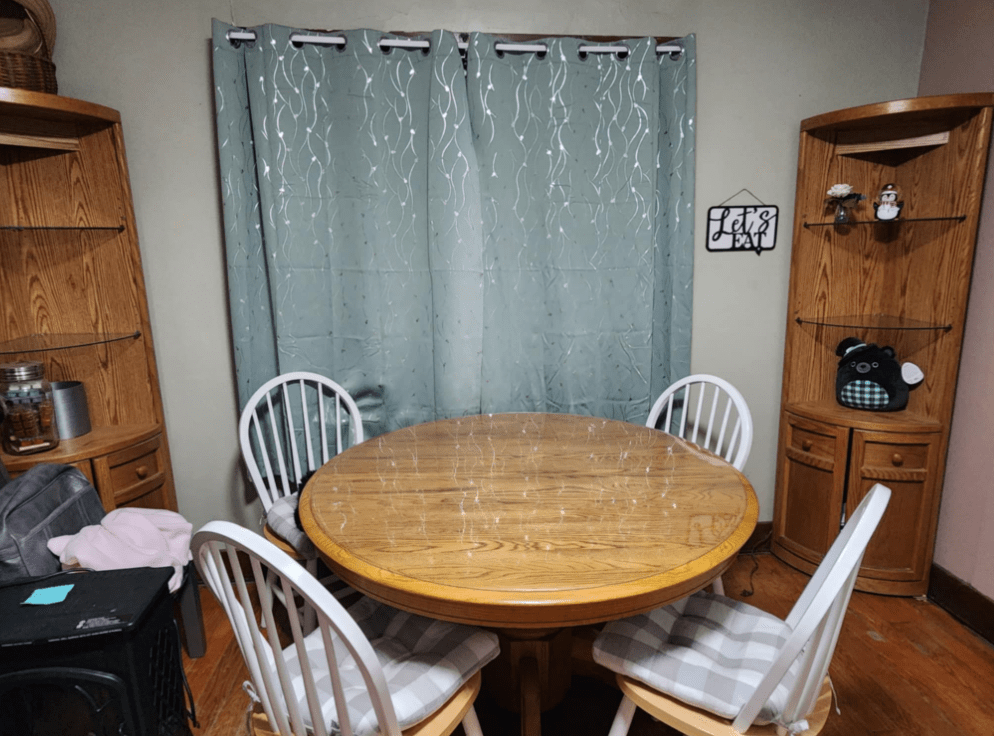 With my Mommy downsizing, she is getting rid of a lot of furniture. I went back and forth, back and forth, and back and forth. Then finally at the last minute, decided to change our furniture to her furniture. Don’t worry, I did ask the hubster. He responded, “I don’t care”. He is happy when there is a table to eat food on . . and when the food is on it! 🤣