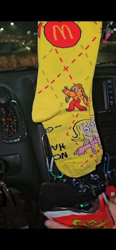 Tonight I am thankful that my kiddo got the Grinch box from McDonald’s and I got the Grinch socks from his box!!