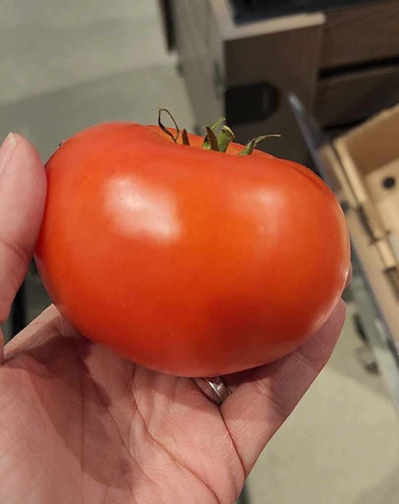 Isn’t this a pretty tomato? I’m not even a fan of tomatoes! I like them made in to ketchup . . and spaghetti sauce . . and a few other things. But, I don’t eat a slab of them in my sandwich or big pieces of them in my . . anything.